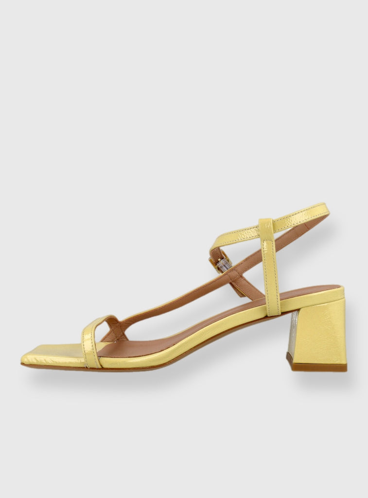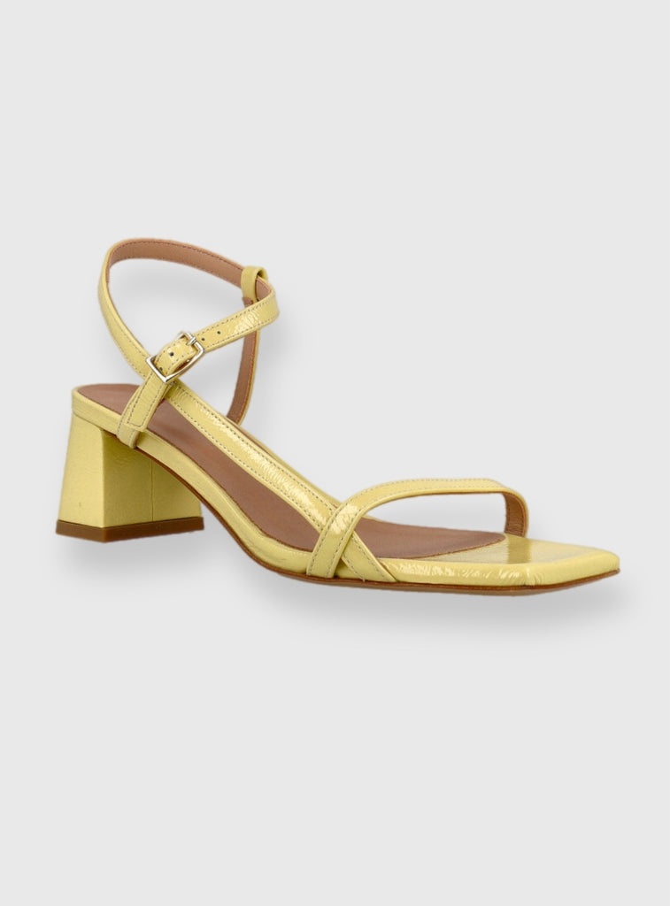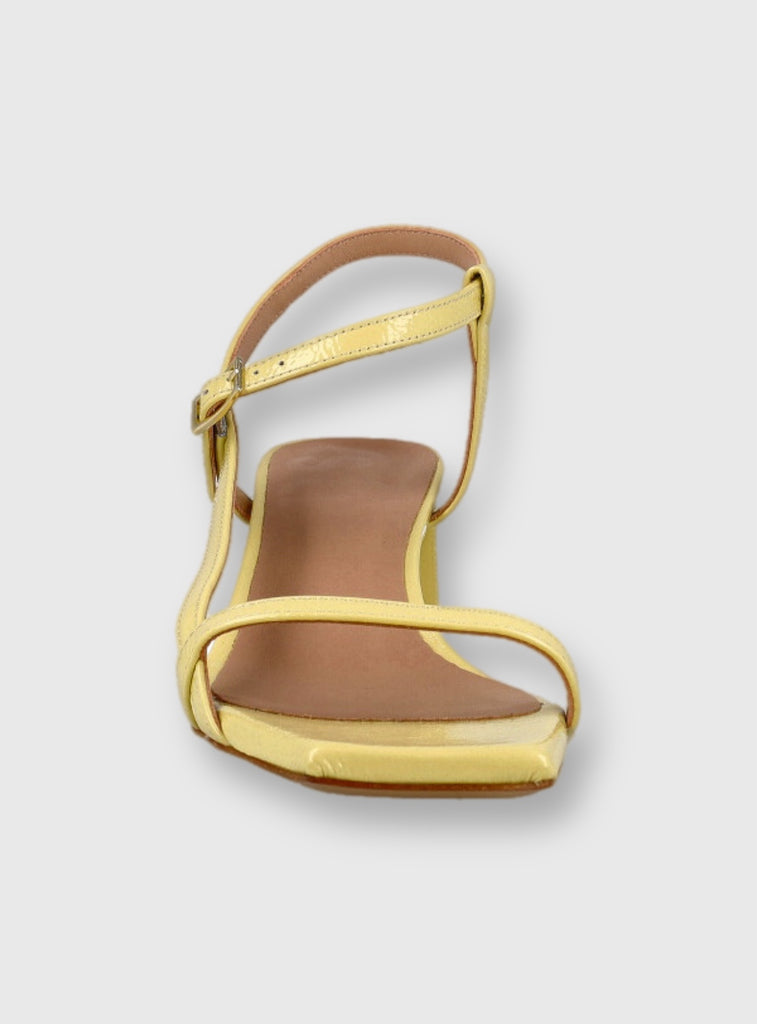 RIGORE GEOMETRICO PER QUESTO SANDALO DALLE  LINEE DEFINITE E SCULTOREE .
